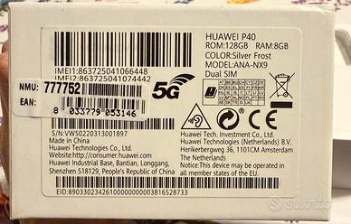 Vendo Huawei P40, nuovo, con pellicola su display. Colore Silver Frost. Rete 5G Dual SIM Accessori imballati come da foto e mai usati. Non accetto resi.