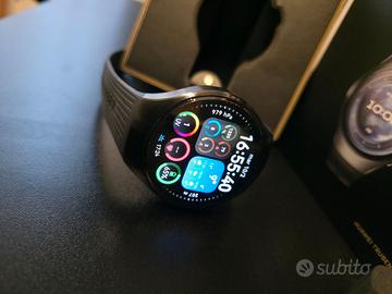 Smartwatch elegante e sportivo con cassa da 46 mm, display AMOLED da 1,5” ultra luminoso (fino a 3000 nit), perfetto sia per uso quotidiano che per sport.