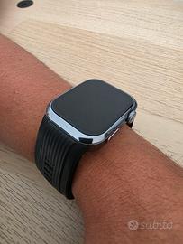 Vendo per cambio modello. Smartwatch focalizzato sulla salute, unico per la sua capacità di misurare la pressione arteriosa tramite un cuscinetto d'aria gonfiabile integrato nel cinturino. integra sensori medici certificati per un'analisi completa. Pressione Arteriosa, ECG e Rigidità Arteriosa e altre metriche tra cui la saturazione. - Display: Schermo AMOLED da 1,82 pollici con luminosità fino a 1500 nit, garantendo visibilità eccellente anche sotto la luce diretta del sole. - Materiali: Cassa in lega di alluminio leggera (40g senza cinturino) e corona girevole per la navigazione. - Autonomia: La batteria dura fino a 6 giorni con uso tipico, ma scende a circa 1 giorno se si attiva il monitoraggio continuo ABPM ogni 15 minuti. - Sport e GPS: Supporta oltre 80 modalità di allenamento con GPS integrato ad alta precisione per il tracciamento dei percorsi. Include microfono e altoparlante per chiamate Bluetooth e permette di visualizzare notifiche e rispondere con emoji o tastiera (su Android). Lo smartwatch è completo di scatola con garanzia e caricabatterie. Nella scatola è compreso un'altro cinturinondi di ricambio con misura M ( la misura L è quella montata) per altre info e foto sul dispositivo scrivimi.