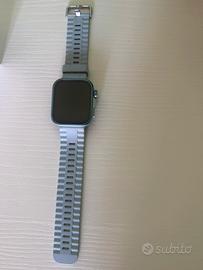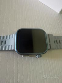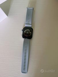 Cassa e cinturino celesti. Vetro in zaffiro, cassa in titanio, fino a 10gg di autonomia (testati), dimensioni 44,5 × 40,0 x 9,3 mm, dimensione del polso 130-210 mm. Funzionalità: frequenza cardiaca, ECG, saturazione, varie tipologie di sporto, torcia, ricevete chiamate e messaggi/ whatsapp. Compatibile con Apple e Android. Leggero. Utilizzato solo un mese, non sono presenti difetti. In dotazione cinturino nero NUOVO, 4 proteggi display e due pellicole trasparenti.