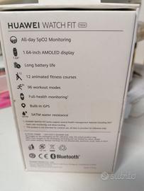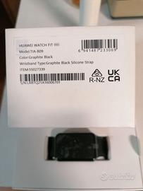 Huawei Watch Fit -New-, Model: TIA-809, Color: Graphite Black, Wristband Type: Graphite Black Silicone Strap, perfettamente funzionante e pronto all'uso. Caratteristiche: Display: 1.64" AMOLED Funzioni Salute: Monitoraggio SpO2, Battito Cardiaco , Livello di Stress. Batteria: Lunga durata (Long battery life). Tracciamento Attività: Contapassi, Calorie bruciate, monitoraggio sonno e sport. Usato 2/3 volte, ancora presente la pellicola sul display, con manuali e caricabatteria dedicato. Condizioni pari al nuovo.