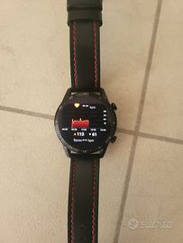 usato ma in condizioni perfette,completo di scatola,pad ricarica,e secondo cinturino in silicone. Soluzione di alimentazione rivoluzionaria Il design a doppio-chip e gli algoritmi 2.0 di risparmio energetico permettono a Huawei Watch GT 2 di consumare meno batteria per poterti assistere giorno e notte Grazie al display 3D curvo, il corpo ultrasottile da 9,4 mm di Huawei Watch GT 2 è stato spinto ai limiti di design e artigianalità. Elegante, leggero e durevole. Caratterizzato da uno splendido display AMOLED, Huawei Watch GT 2 ti offre un'accurata reattività al tocco, per un'esperienza visiva inedita. Hai a disposizione un'ampia varietà di quadranti* da selezionare e personalizzare. Rinfresca il tuo mood quotidiano con colori e stili differenti Sistema di posizionamento di precisione Grazie al supporto ai sistemi di posizionamento satellitare GPS e Glonass, Huawei Watch GT 2 ti fornisce servizi di geolocalizzazione rapidi e accurati. Dopo un'escursione o una maratona, saprai esattamente dove ti trovi e i tuoi progressi lungo il percorso. Monitoraggio del battito cardiaco in tempo reale HUAWEI TruSeen è stato aggiornato alla versione 3.5 per offrirti un più efficiente e accurato monitoraggio del battito cardiaco in tempo reale. Supportato dall'intelligente algoritmo con AI, monitora il tuo battito per l'intera giornata, anche durante il sonno. Estetica minimale Ospitando un quadrante in vetro 3D e grazie alle speciali tecniche di lavorazione impiegate, il vetro di alta qualità di Huawei Watch GT 2 è durevole e resistente all'acqua e alla polvere. Il tuo assistente quotidiano Resta in contatto Grazie alla funzionalità di chiamata Bluetooth di Huawei Watch GT 2, puoi effettuare o ricevere chiamate durante l'attività sportiva o quando le tue mani sono occupate. Resta sempre in contatto con la tua famiglia o i tuoi amici. Riproduzione musicale.Splendido fuori, robusto dentro. Huawei Watch GT 2 può archiviare fino a 500 canzoni ed essere facilmente abbinato con auricol