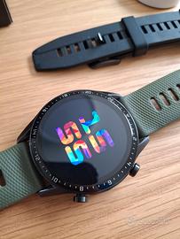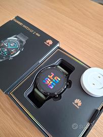 Vendo per passaggio a modello successivo smartwatch Huawei Watch GT 2 (46mm), perfettamente funzionante e tenuto con molta cura. L'orologio è in buone condizioni estetiche e funzionali, senza segni particolari di usura o danneggiamenti sul display o sulla cassa. La batteria garantisce ancora un'ottima autonomia (uno dei punti di forza di questo modello). Cosa è incluso nell'offerta: Huawei Watch GT 2 originale. Scatola originale integra. Base di ricarica magnetica. Manualistica e libretti originali. Cinturino originale Huawei. Cinturino after-market aggiuntivo (incluso nel prezzo). Lo smartwatch è già stato resettato e scollegato dal mio account, pronto per essere configurato da un nuovo proprietario.