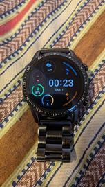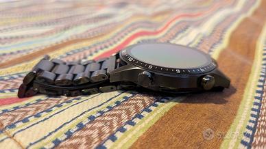 Smartwatch funzionante e con un'ottima autonomia di batteria. Il cinturino mostra dei segni d'usura così come il display (alcuni graffi visibili meglio nell'ultima foto), ma sono difetti che non inficiano il funzionamento dell'orologio. I pulsanti laterali hanno perso un po' di feedback tattile alla pressione, ma rispondono comunque senza problemi. Lo smartwatch verrà venduto insieme a: -base magnetica originale per ricarica SENZA CAVO (necessita di un semplice cavetto USB-C da cellulare) -scatola originale -manuali