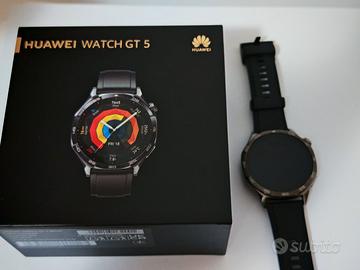 Vendo Huawei Watch gt 5 come nuovo Scatola carica batterie cinturino e orologio. No garanzia. Usato pochissimo perché è troppo grande per me