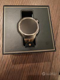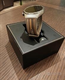 cassa in titanio, vetro in zaffiro e retro in ceramica monocristallina, schermo AMOLED da 1,47 pollici, luminosità 3000 nit. certificato 5ATM ma anche IP69
