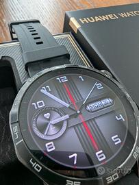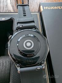 Huawei Watch GT4 46mm nero, come nuovo! Nessun graffio sul vetro. La batteria dura ancora più di 12 giorni con un utilizzo normale, come notifiche attive e 5 allenamenti a settimana (senza always-on display). Con scatola originale come nuova e caricabatterie originale. Incluso: - 3 cinturini in nylon - 1 cinturino in metallo - 4 cover