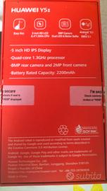 smartphone Huawei Y5 funzionante come nuovo completo di scatola originale. memoria interna 8GB con memoria espandibile. no alimentatore. spedizione entro 24h lavorative. per qualsiasi informazione sto a vostra disposizione.