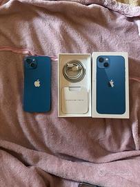 I phone 13 128 giga colore blu cobalto, in buone condizioni, vetro davanti perfettamente intatto e funzionante, retro perfettamente intatto, presenta solo qualche segno di usura sui bordi della scocca, salute batteria 77% con un utilizzo normale dura circa 8 ore, già resettato, touch screen come nuovo e super sensibile e reattivo al tocco, vendo per regalo I phone 17, con la cover in omaggio che protegge telefono e telecamere e cavo di ricarica incluso