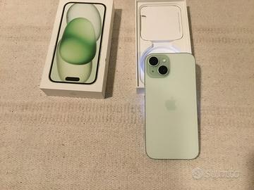 Vendo I phone 15 128 GB, verde, condizioni perfette. Batteria 90%. Dotato di scatola e cavetto originale.