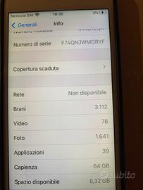 I-phone 6 s inutilizzato da tempo, scocca e display perfetti, 64 Gb memoria, batteria sostituita con capacità attuale 93%, qualche problema nella regolazione del volume, vendo come ricambi.