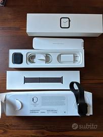 Cassa in alluminio grigio siderale da 40 mm. L’orologio è abilitato a funzionare come telefono con sim virtuale ed è subaqueo fino a 50 metri. Consiglio di sostituire la batteria. E’ usato ma veramente in ottime condizioni. Il cinturino è quello di fabbrica.