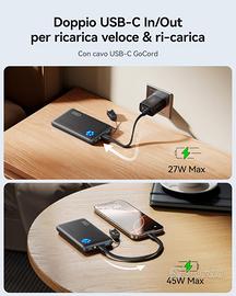 Ricarica a piena velocità da 45W per iPhone 16 e Samsung S24: Questa power bank fornisce fino a 45W di potenza e supporta i protocolli di ricarica rapida PD, QC e altri. In soli 25 minuti, ricarica il tuo iPhone 16 al 63% e il tuo Samsung S24 Ultra fino al 73%.