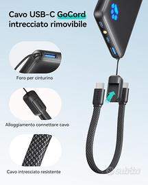 Cavo USB-C Lanyard incluso: Dotato dell'esclusivo cavo intrecciato in nylon USB-C di INIU, molto più resistente delle alternative in plastica. Non dovrai più preoccuparti di dimenticare il cavo: ricarica e riutilizza con un solo cavo pratico.