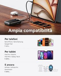 Carica rapida 45W per iPhone 17 e Samsung S25 Con una potenza di uscita fino a 45W, questa power bank supporta PD, QC e altri protocolli di ricarica rapida. Carica il tuo iPhone 17 al 70% in soli 25 minuti e il tuo Samsung S25 Ultra all’80%.