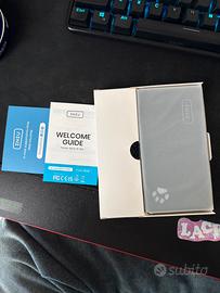 Nuovo purtroppo mi era arrivata la scatola gia danneggiata(un piccolo graffio). Con cavo USB A USB C e custodia.