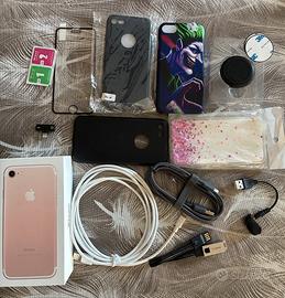 Iphone 7 gold rosa Modello A1778 perfetto mai caduto usato poco scatola originale cuffie adattatore e caricabatterie mai usati. Con varie cover nuove ,vari cavetti, auricolare vetro temperato, supporto nuovo per auto, adattatore ciffia carica prezzo trattabile