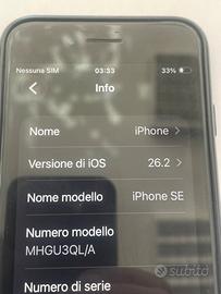 Iphone Se Seconda Edizione. Capacità 128 Gb, batteria sostituita, aggiornato 26.2. Cellulare tenuto molto bene, perfettamente funzionante e sempre usato con cover protettiva.