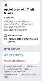 Vendo Iphone 11, 128 Gb, nero incluso di cavo carica batteria acquistato nuovo con scontrino visibile. In perfetto stato ancora coperto da garanzia Apple Care fino al 28 gennaio 2026. Lo stato della batteria é al 96% sostituita da pochi mesi. Lo schermo é inmacolato perche sostituito con la Apple care il 20 gennaio 2026. Vendo per passaggio ad iphone 17.