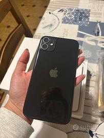 iPhone 11 64 GB in perfette condizioni, completo di tutto. Cavo di ricarica originale, cuffiette originali mai usate, più in regalo una pellicola per lo schermo, una pellicola per le fotocamere e 6 cover assortite.