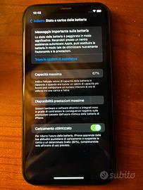 iphone 11 64 GB in ottime condizioni condizioni prestazionali. 🔋capacità batteria 67% 📲schermo anteriore e posteriore in eccellenti condizioni (tenuto sempre vetrino e cover di protezione fino a poco prima delle foto) 📸qualità telecamera ottima ✅face id funzionante presenta qualche segno di usura sui bordi come da foto e sulla scocca della fotocamera (senza alterarne le prestazioni). SPEDITO (inizializzato e pronto all’uso) ANCHE CON SCATOLA E COVER MA SENZA CARICATORE.