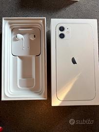 iPhone 11 da 64gb in ottimo stato con pellicola anti urto e graffio già installata in negozio, con scatola, cuffiette ancora imballate, cavetto ricarica e 6 cover + AirPods 2a generazione in buono stato con scatola, cavetto ricarica ancora imballato e 1 cover