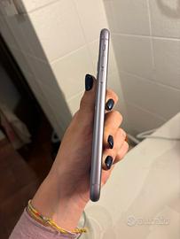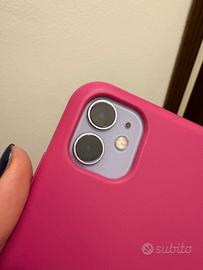 IPhone 11 lilla 128GB. Esteticamente in perfetto stato, senza graffi o scheggiature. Batteria al 70%. Cover fucsia in omaggio.