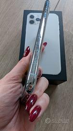 Vendo iPhone 11 Pro da 64GB, colore bianco, in buone condizioni. Il telefono è sempre stato usato con cover e pellicola protettiva, quindi lo schermo è perfetto. I bordi argentati si sono leggermente opacizzati, ma non ci sono graffi o ammaccature evidenti.