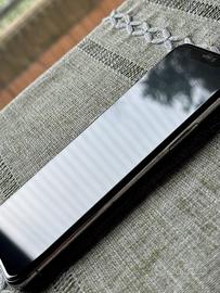 • Bordi in acciaio: Presentano i tipici micro-graffi da "sfregamento" causati dal contatto con la cover (comune su questo modello a specchio).