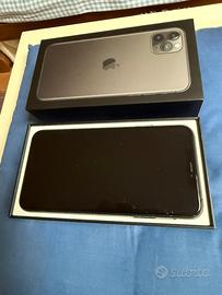 iPhone 11 Pro max 512 GB, con scatola originale Batteria 70% Perfettamente funzionante. Lenti ottiche ottime Un graffio leggero visibile sullo schermo da spento ininfluente sul funzionamento Con cavetto di ricarica