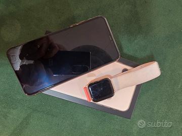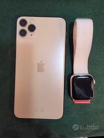 vendo telefono 11Pro Max quasi nuovo usato pochissimo di colore oro in quanto gia in possessodi un telefono Samsung assieme allo stesso vendo orologio iPnone di colore oro rosato perfettamente funzionante