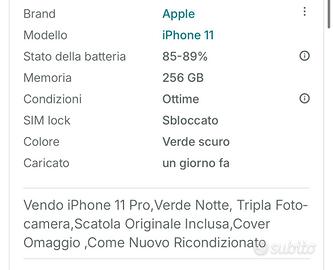Tripla fotocamera, scatola originale inclusa, cover in omaggio. Batteria 81%, funzionante e in buone condizioni. Memoria: 256 GB prezzo: 220 euro (trattabili) DM per info