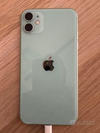 iPhone 11 colore verde,128 Gb, Usato, con un leggero segno sullo schermo, completo di scatola e cavo originale, batteria con autonomia ridotta.