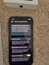 il telefono ha pochissimi segni di usura, visibili solo ai lati in metallo, display e retro perfetti, batteria al 76% di salute che nonostante non sia la migliore percentuale regge bene una giornata di uso, mai aperto o riparato. includo 2 cover di cui una magnetica, che si puoʻ lasciare anche tranquillamente attaccato a una parete metallica, 2 pellicole di cui una già installata ma immacolata, scatola con tutti i fogli e un cavo