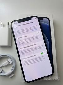 iphone 12 128gb colore nero. tenuto con cover e vetrino protettivo. lo speaker superiore non funziona quindi chiamate solo in vivavoce, è stata cambiata la batteria quindi è nuova 100%. cavo + alimentatore scatola originale cover magsafe #TIK2