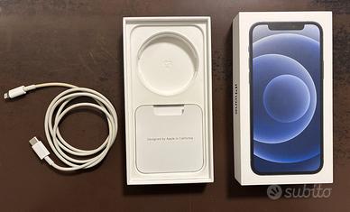 Vendo Iphone 12 blu 128 gb, perfettamente funzionante, ma con alcuni difetti estetici sul bordo e intorno all'obiettivo delle fotocamere. Batteria al 77%, compreso di scatola, cavo usb-C/lightning e cavo usb/lightning