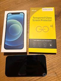 iPhone 12 blu mezzanotte, con vetro temperato privacy, qualche graffio ed ammaccatura sulla scocca, nessun graffio sul vetro , e perfettamente funzionante. batteria 80%