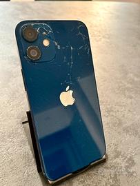 iPhone 12 mini 128 GB Blu con scatola – funzionante, vetro posteriore rotto.