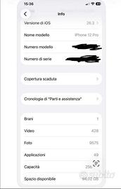 Vendo iPhone 12 Pro 256GB colore Pacific Blue, originale Apple, aggiornato all’ultima versione di iOS e perfettamente funzionante in ogni sua parte. 📱 Modello: iPhone 12 Pro 💾 Memoria: 256GB 🎨 Colore: Pacific Blue 🔋 Batteria: 77% (mai sostituita) CONDIZIONI Telefono in ottime condizioni estetiche, sempre utilizzato con cover e protezione display. Nessuna ammaccatura o danno strutturale. Presenta solo normali segni di utilizzo visibili in controluce. FUNZIONAMENTO ✔ Face ID perfetto ✔ Fotocamere perfette ✔ Audio, rete e sensori funzionano perfettamente ✔ Mai aperto o riparato INCLUSO 📦 Scatola originale Apple 🔌 Cavo USB-C Lightning originale 📱 iPhone 12 Pro 256GB PREZZO 💰 €290 leggermente trattabili dopo visione 📍 Consegna a mano a Roma 📦 Spedizione possibile a carico dell’acquirente ❌ No scambi ❌ No offerte fuori mercato Annuncio serio, disponibile per qualsiasi prova. 🔥 iPhone 12 Pro 256GB Pacific Blue – scatola originale