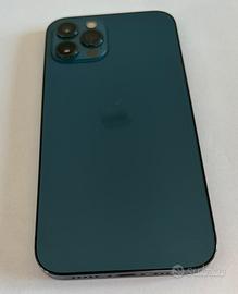 Iphone 12 pro colore blu 256 Gb con vetro e scocca integri, protetto da pellicola e cover, audio parzialmente funzionante, batteria sotto 80%.