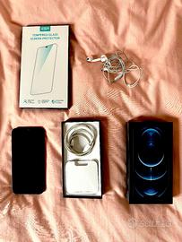 Iphone 12 pro max, 128 GB, colore blu Pacifico usato, ma funzionante e senza alcun segno di uso, con scatola originale, e cavo USB‑C a Lightning originale. In più regalo: 1) Apple EarPods e 2) Tempered glass screen protector; 3) Cavo USB a Lightning.