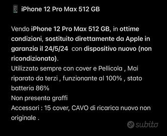 Vendo iPhone 12 Pro Max 512 GB, in ottime