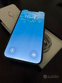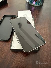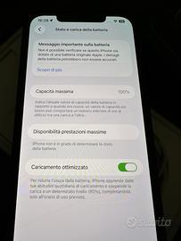 iPhone 12 Pro Max 128 gb, nero grafite, batteria al 100% sostituita con componente compatibile, il telefono funziona molto bene ma presenta il vetro posteriore danneggiato che non ne compromette, però, la funzionalità. Regalo una bella cover che ne nasconde il difetto. Fornito con scatola originale e cavetto di ricarica