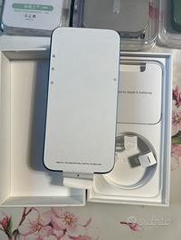 2. Iphone 13 blue 128 gb, 3 cover, con scatola e con filo di ricarica