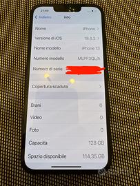 Iphone 13 128GB Midnight in perfette condizioni Tenuto sempre nella cover (inclusa) e vetro temperato (non incluso) Nessun graffio, nessun segno di usura Batteria originale 100% capacità Utilizzato poco essendo un telefono di servizio, pertanto la capacità della batteria é al 100% Solo scambio a mano