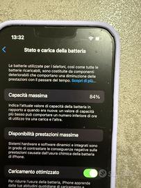 Vendo IPhone 13 perfettamente funzionante con normali segni di usura qualsiasi prova… N.B NO SCATOLA ORIGINALE Batteria 84% come da foto