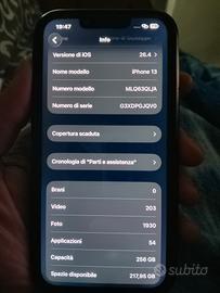 vendo iphone 13 256, batteria al 100% appena sostituita, tutto funzionante. vendo o per muto con android
