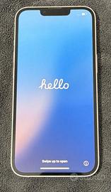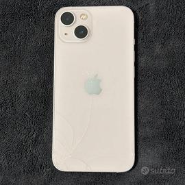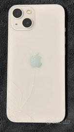 iphone 13 di colore bianco con qualche scheggiatura sul posteriore ma totalmente funzionante, versione da 128gb,