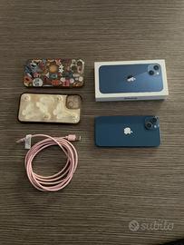 Iphone 13 da 128 gb in eccellenti condizioni tranne che per due piccole scalfitira come da doto allegate. Batteria al 73%, incluse due cover usate e un cavetto da 2 metri.