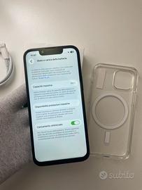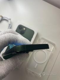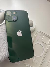 iphone 13 mini 128gb colore verde. lo schermo è stato sostituito di conseguenza non ha nessun graffio nuovo di zecca. la scoca ha qualche segno ma con la cover non si noterebbe nulla. la capacità batteria è 86%. tutto funzionante perfettamente qualsiasi cosa. scatola originale + accessori